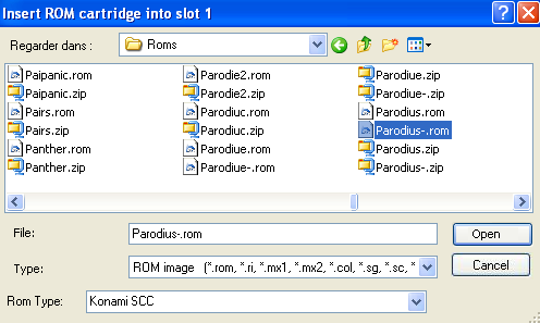 files types with blueMSX by using the menu